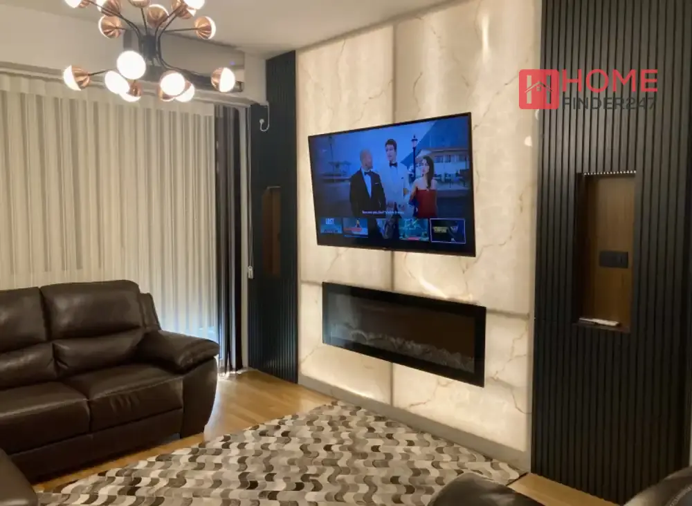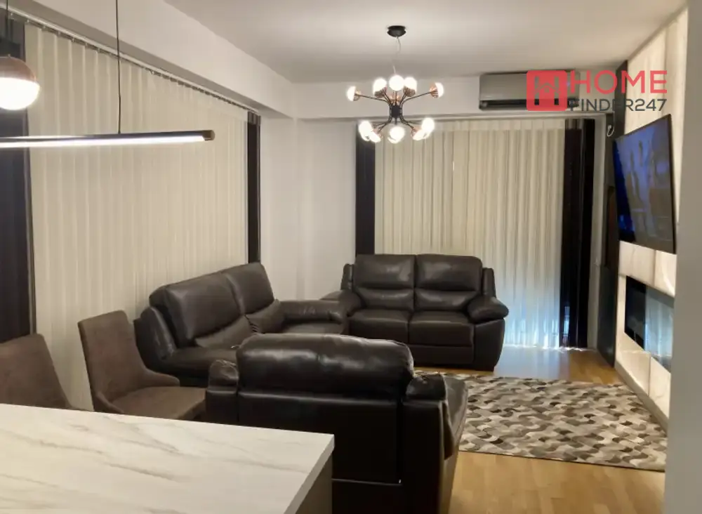 Dieses moderne Apartment bietet alles, was das Herz begehrt: ein gemütliches Schlafzimmer, ein Kinderzimmer, ein helles Wohnzimmer mit Essbereich und einer eleganten Marmorbar. Perfekt für entspannte Abende und gesellige Stunden.