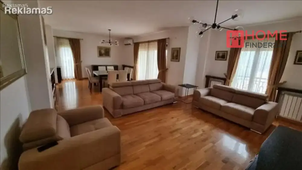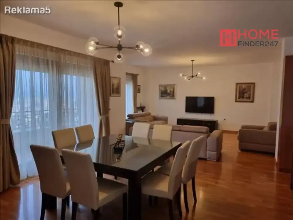 A new apartment for rent in Vodno, has 160 m2, 4.5 rooms, a living room and 3 bedrooms with separate bathrooms, furnished with new furniture, a new kitchen with all necessary household appliances, inverter air conditioners in each room, 2 balconies, one of which has an open view of Skopje, 3 bathrooms and 1 guest toilet, new construction, 2 parking spaces in the garage, basement, heating with its own electric boiler, ready to move in immediately...