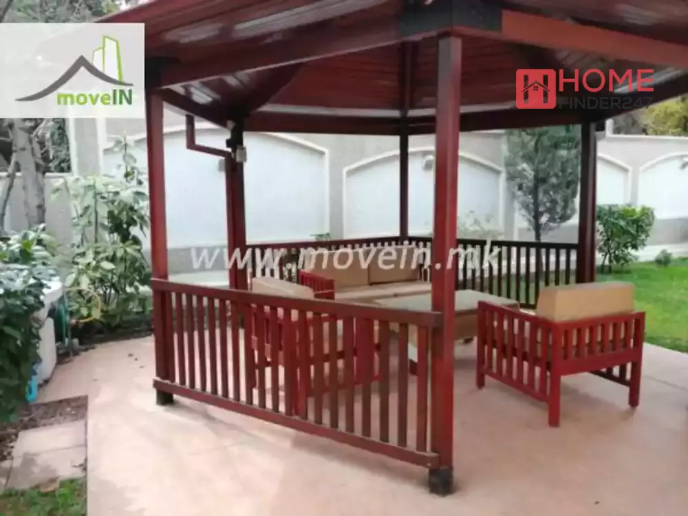 Single house for rent with a beautiful green backyard, located in a very peaceful area. It has 360m2 living space on three levels, with 5 bedrooms, 4 bathrooms, an individual heating system on electricity and oil, air-conditioning, a garage for 2 vehicles.
