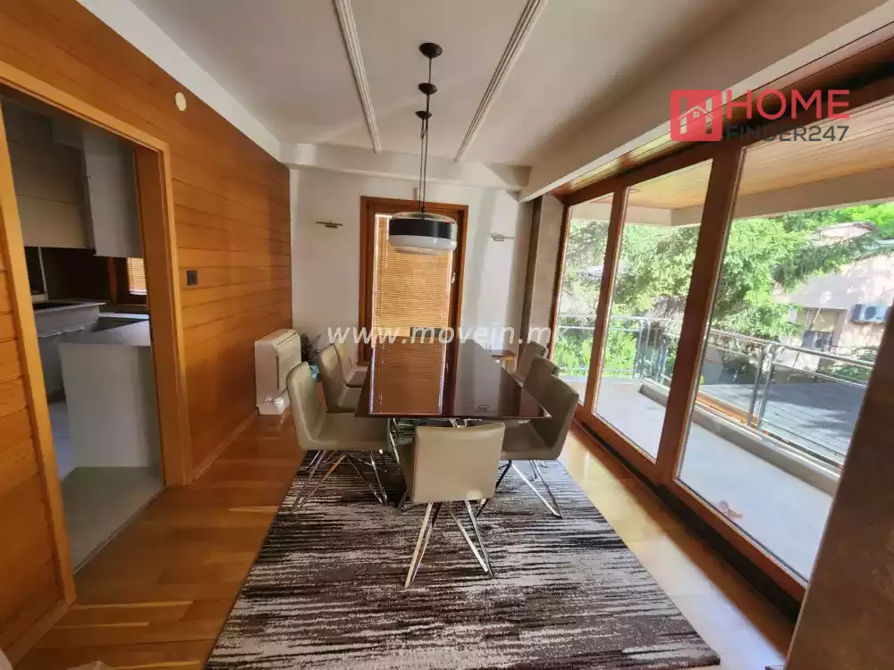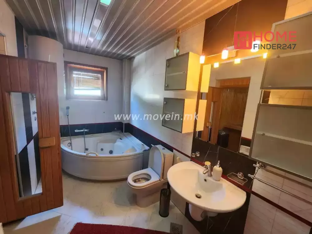 Beautifully furnished new house for rent, with an area of 315m2 on two levels with a small and private backyard. It has large living room, separate kitchen, 3 bedrooms, 3 bathrooms, sauna and a guest apartment with 60m2 area with a bedroom. The house has an individual heating system on electricity, fire place, and parking space for 3 vehicles.
