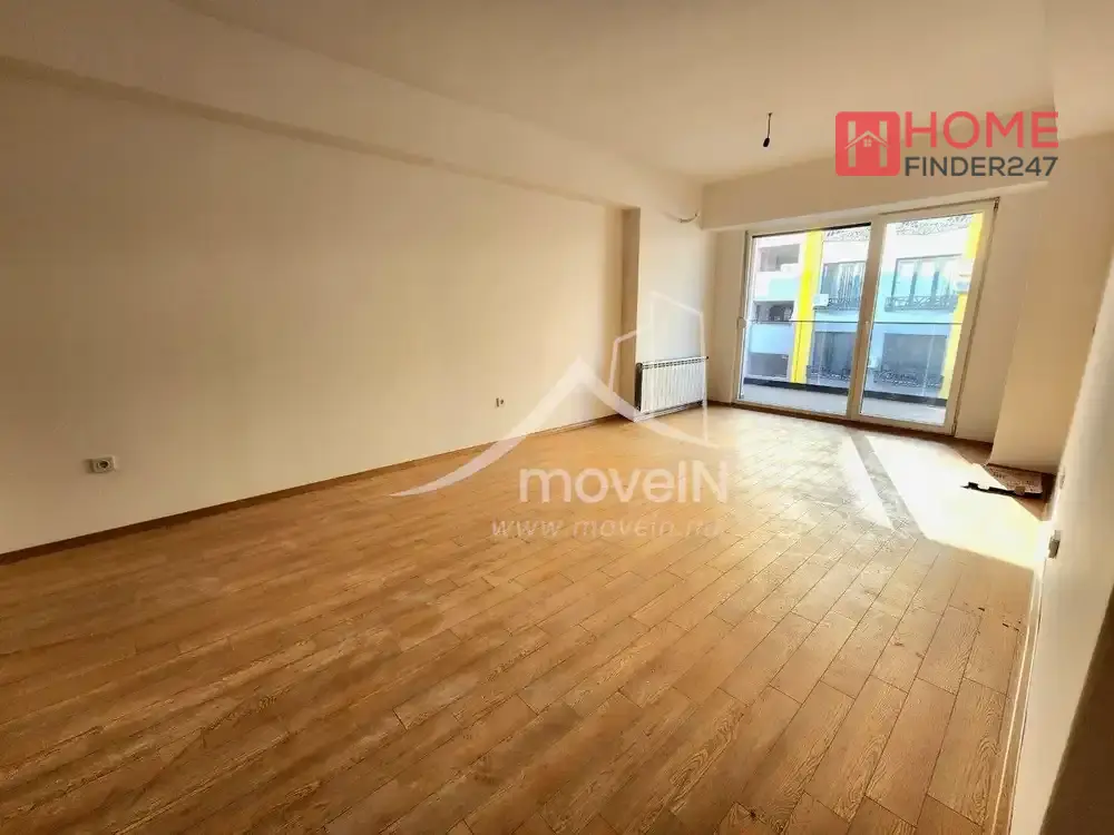 This modern apartment features a spacious living room with an open kitchen and dining area, perfect for cozy family gatherings or entertaining friends.
