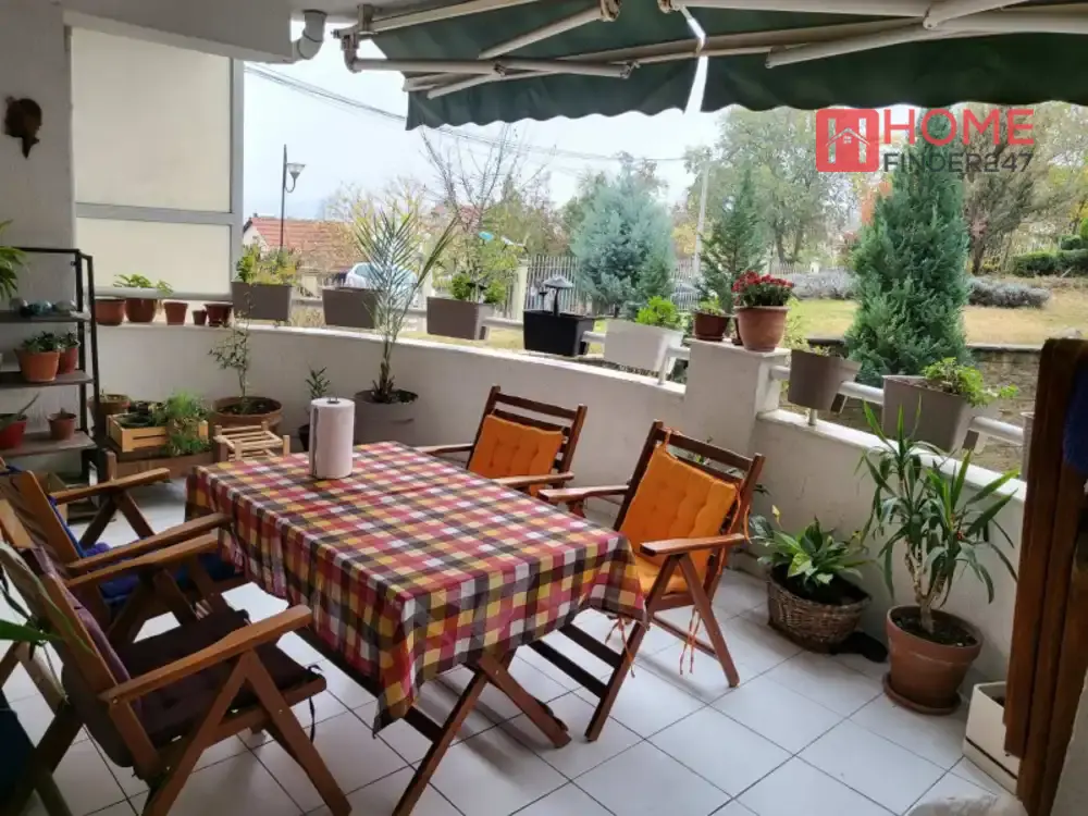 A three-bedroom furnished apartment is for sale in Vodno. The apartment is located on a high ground floor, completely renovated. The heating in the apartment is wood. The apartment has a terrace and a swimming pool that the tenants can use if they pay the monthly maintenance obligations for the pool.
