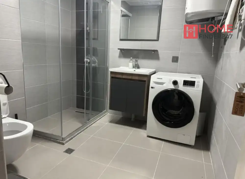 The interior showcases high-quality Italian ceramic tiles and three-layer parquet flooring, offering both elegance and durability.