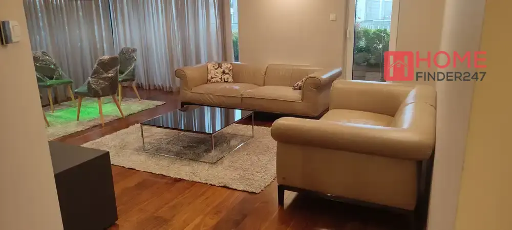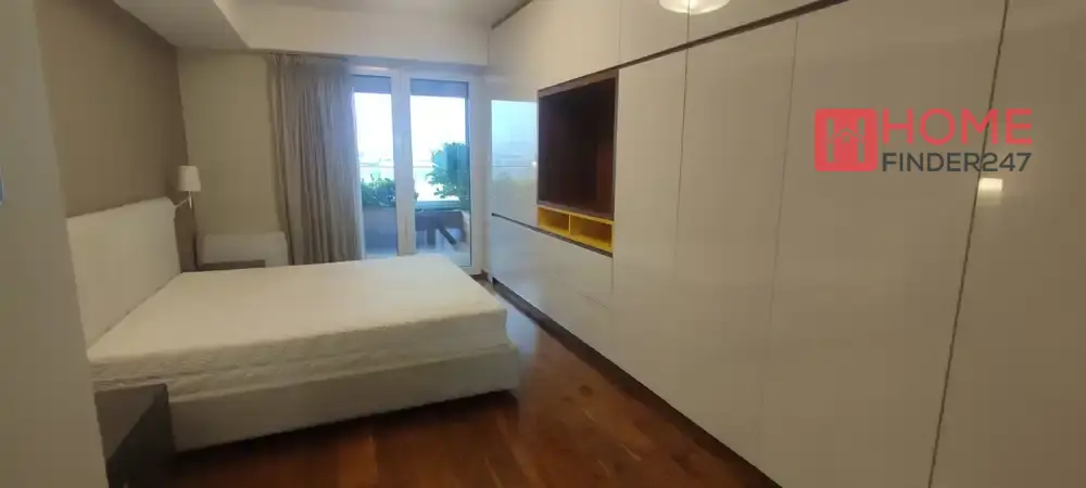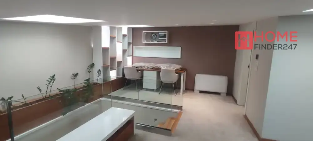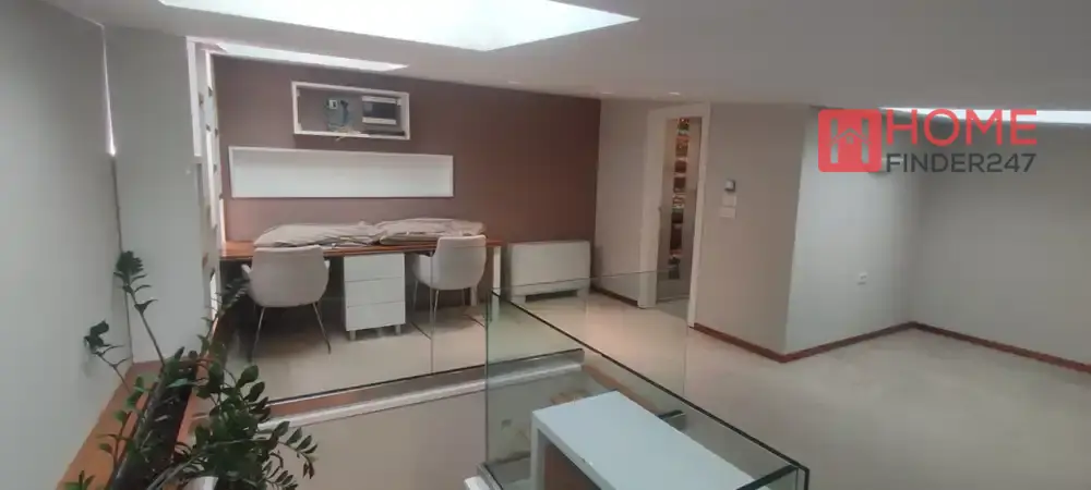 Ovaj stan nudi tri spavaće sobe, dodatnu kancelariju, tri kupatila, prostran dnevni boravak sa kuhinjom, veliku terasu i dvije garaže.