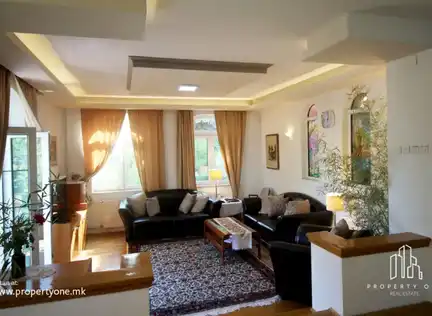 Splendida villa in affitto a Skopje, nel quartiere Karposh - Taftalidze 2. Superficie abitativa di 240m2 su due piani (piano terra e primo). Al piano terra, ampio soggiorno, cucina, sala da pranzo, corridoio e porta panoramica con accesso al giardino di 100m2. Al primo piano, una piccola zona soggiorno con cucina e balcone, una camera da letto con balcone francese, due camere per bambini (una con bagno e balcone). Tutte le stanze sono dotate di aria condizionata e radiatori con regolazione del riscaldamento. Piccolo ufficio di 30m2 con cucina e bagno. Taverna nel seminterrato trasformata in mini palestra con ping-pong. Parcheggio nello cortile. Sistema di allarme con sensori per la massima sicurezza. Prezzo di affitto: 1.100 euro mensili, spese escluse.