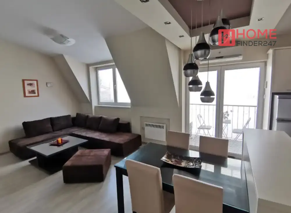 Овој современ, добро осмислен дизајн - светли бои и отворена воздушна атмосфера, го прави овој стан многу удобен.