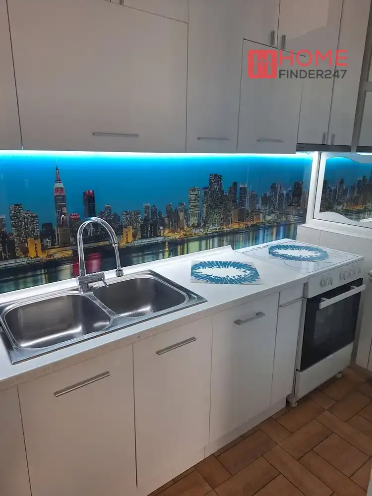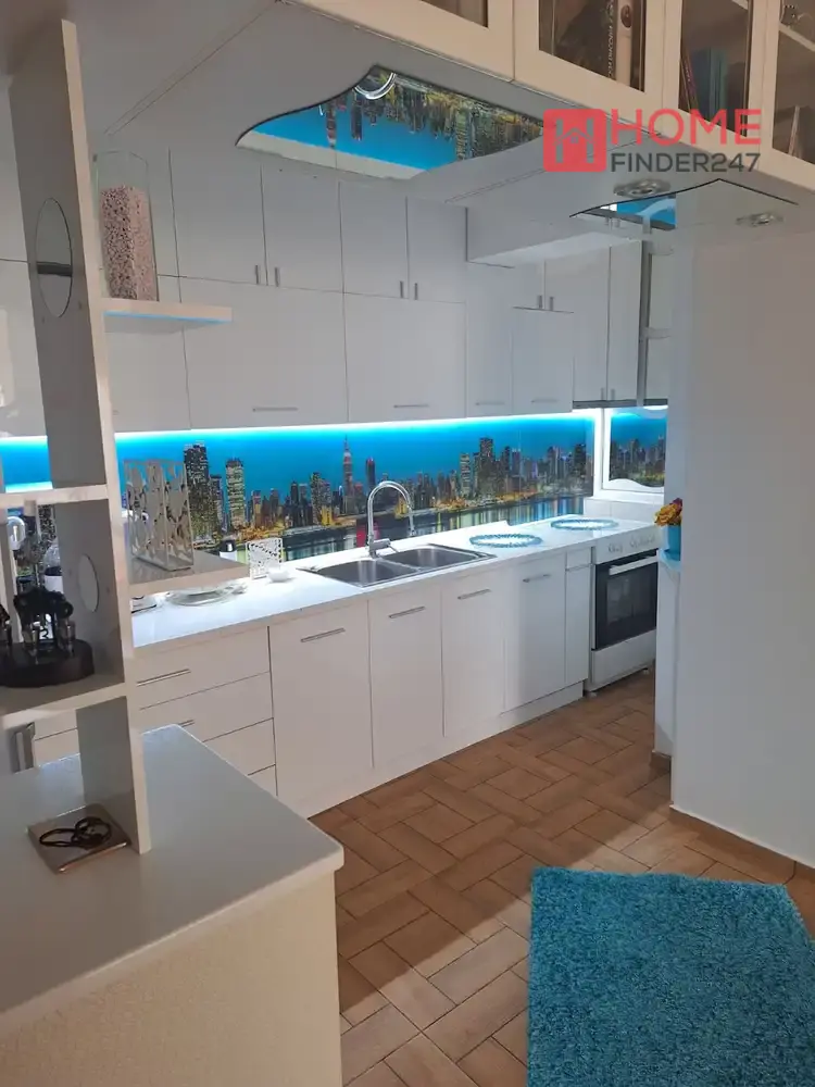 Мебелен и уреден, внатре ќе најдете просторен дневен простор, одделна кујна, 2 спални соби и 2 бањи.