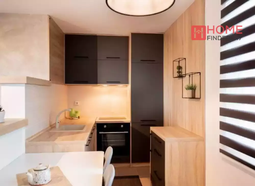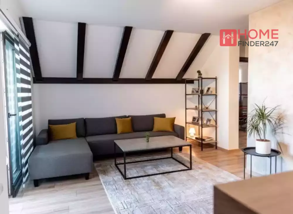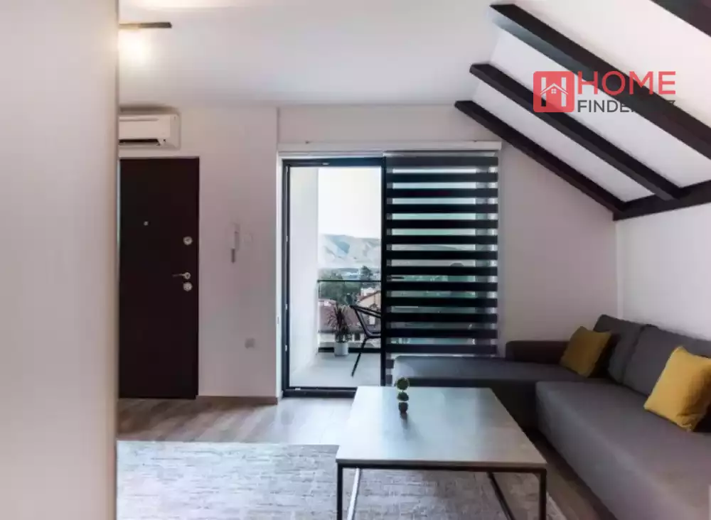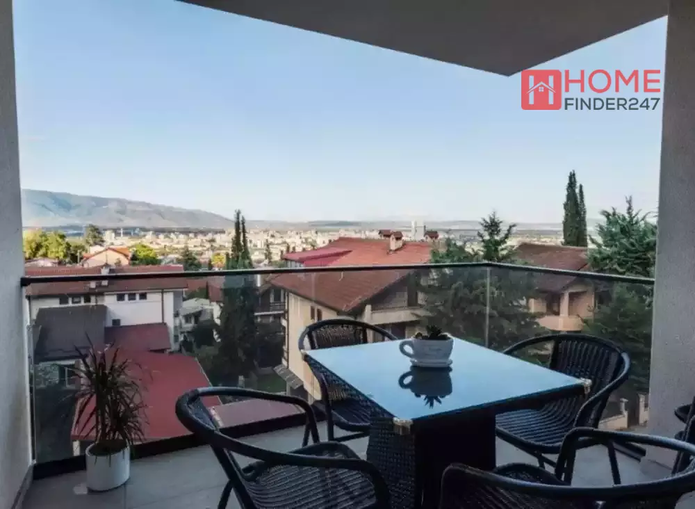 Оваа пријатна апартман е опремена со студиски простори, салон, кујна и тераса со прекрасен поглед кон Скопје.