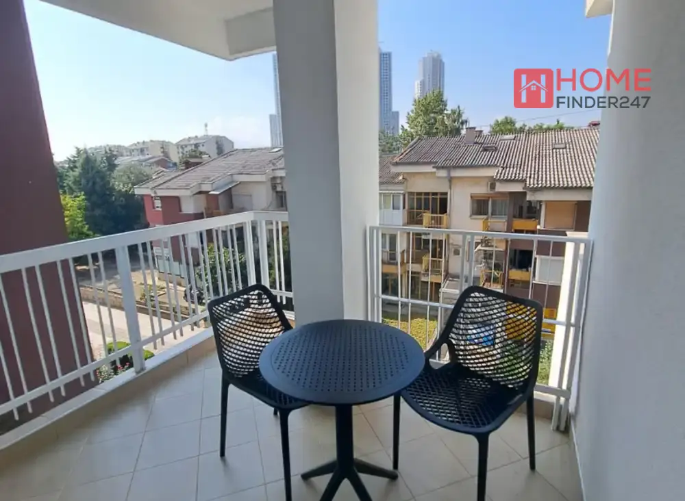 Овој стан располага со едична спална соба, современа дневна со трпезарија, кујна, тоалет и две тераси за одмор и уживање.