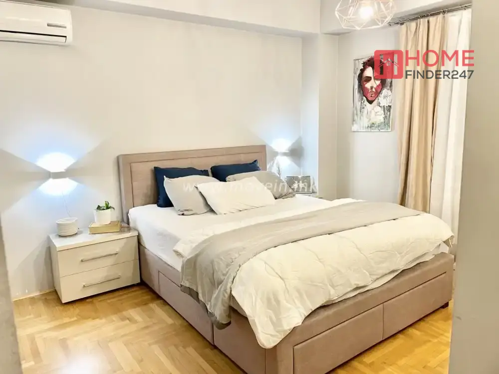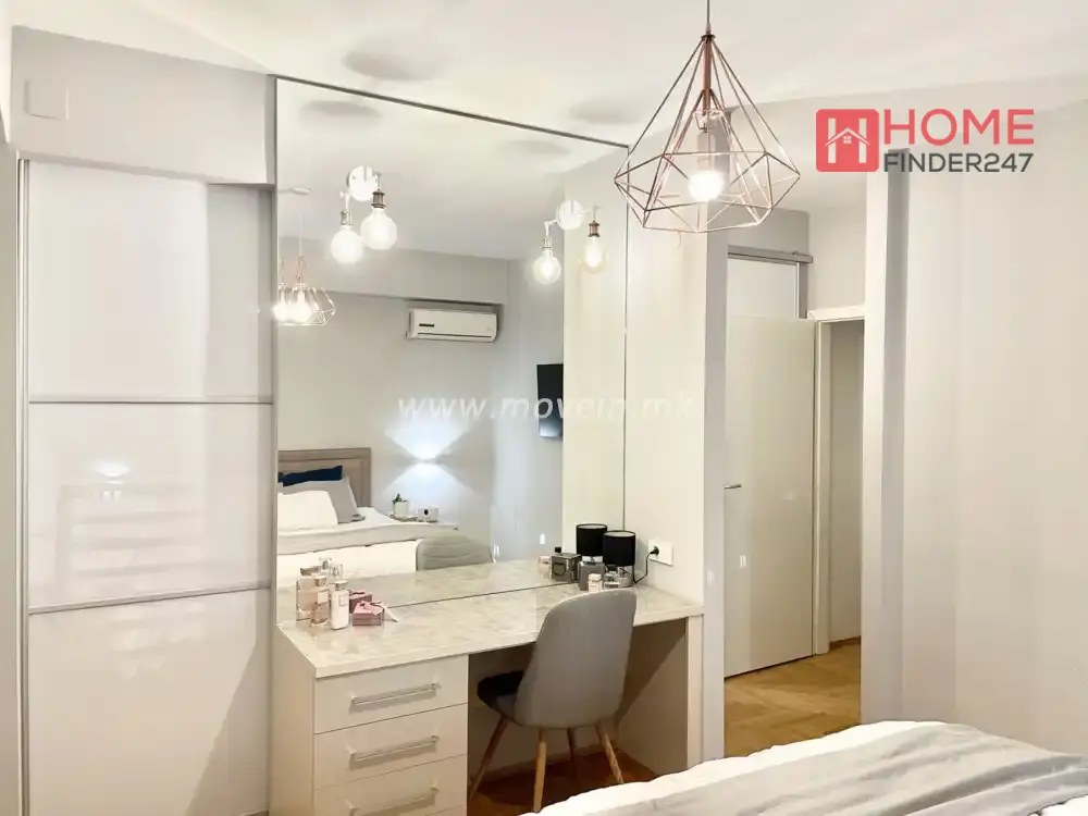 Станбата има основна спална соба со гардеробна, детска соба која може да се адаптира според потребите на изнајмателот, две бањи и балкон со добра големина.