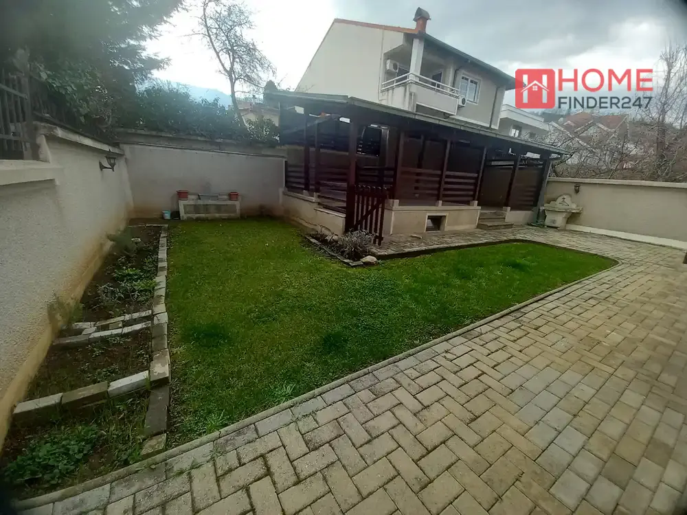 Со вкупна површина од околу 250м2, сместен на уреден двор од 350м2. Домот е издаден празен, со кујна и вградени шкафови. Постои на два ката поврзани со внатрешни скали.