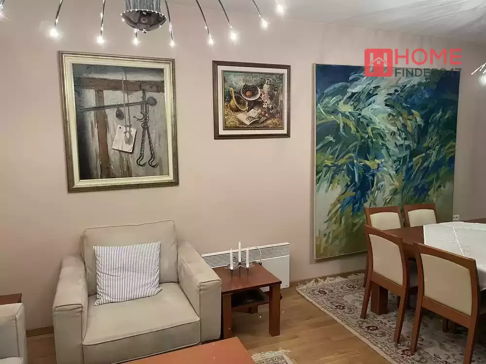 Наоѓа се во приватна куќа со трпезарија и градина од 50м2 на приземје — совршено за вашето утринско кафе или вечери со пријатели.