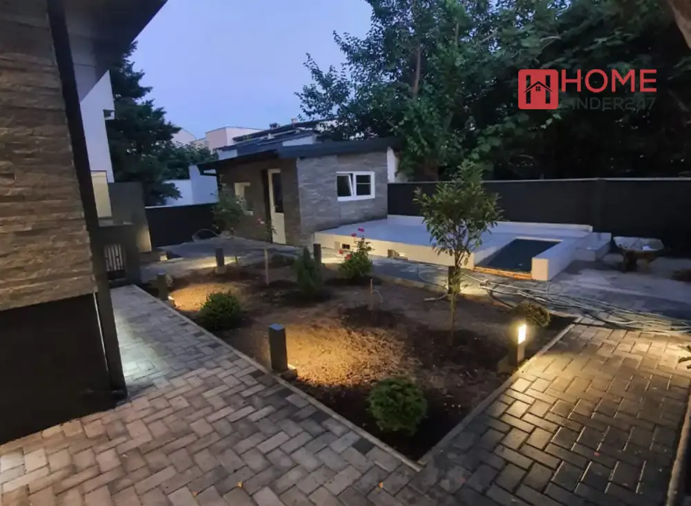 Куќата располага со три паркинг места и голем двор со летна кујна.