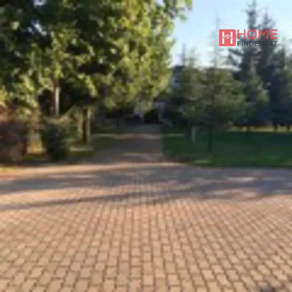 Гаража и пристап до куќата, целосно е заобиколен со железна ограда.