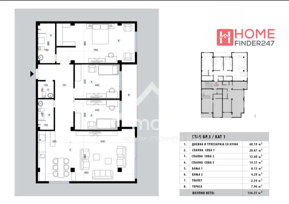 Купатило, тоалет и тераса од 8м2.