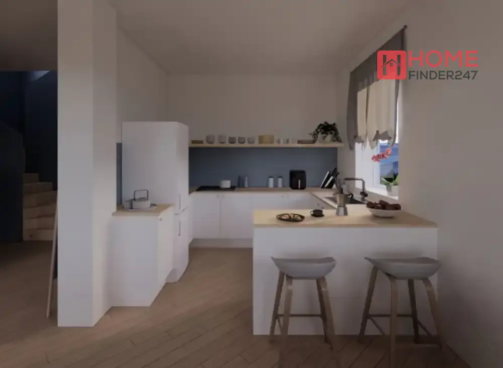 Куќите се двособни (приземје и првиот кат) и вклучуваат тераса и покриена веранда.