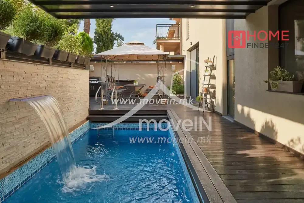 Ексклузивна нова куќа на пет нивоа за продажба со вкупна површина од 429 м2 и надворешна површина од 325 м2, опремена со базен, местото за barbecue, летна кујна и седечка зона.